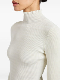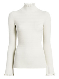 Phyllis turtleneck top Highlights - Off white - Ribbed knit - High neck - Long sleeves - Ruffled trim - Straight hem Imported Composition Viscose 100%, Polyamide 100%, Elastane 100% Washing instructions Read Manufacturer Guidelines