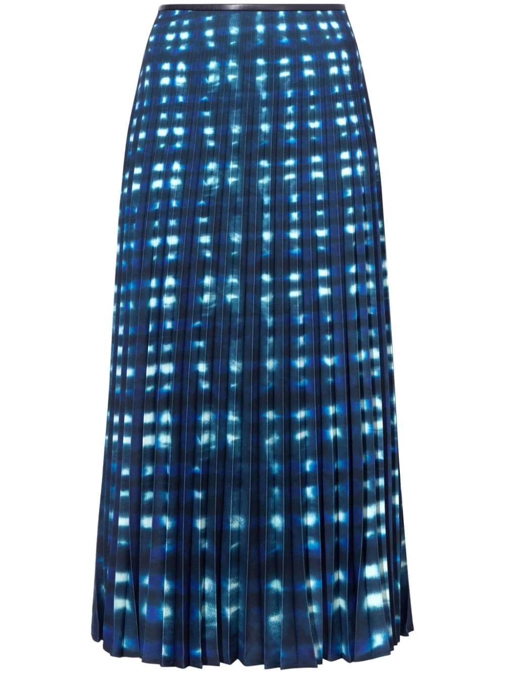 Piper tie-dye pleated midi skirt Highlights - Navy blue/light blue - Crepe texture - Tie-dye print - High waist - Concealed side zip fastening - Fully pleated - Straight hem - Mid-calf length Imported Composition Polyester 97%, Spandex/Elastane 3% Washing instructions Dry Clean Only