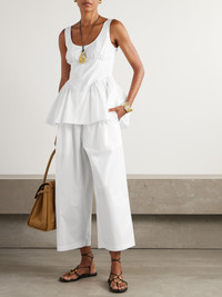 Kayla cropped cotton-poplin wide-leg pants White