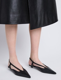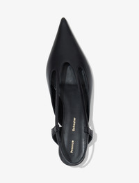 The Point Slingback Pumps feature a slip-on silhouette with a slingback. Completed with an elongated closed toe and upper negative space detailing. Details • Black • 20mm heel • Slip-on silhouette • Slingback • Elongated closed toe • Upper: 100% kidskin; sole: 100% leather • Made in Italy • SKU: PS42010A19010999 Size & Fit • True to Size Care • Upper: 100% kidskin; sole: 100% leather • Please refer to care instructions provided with your order.