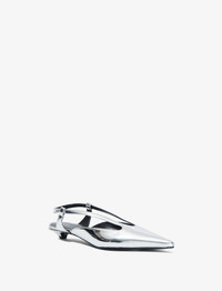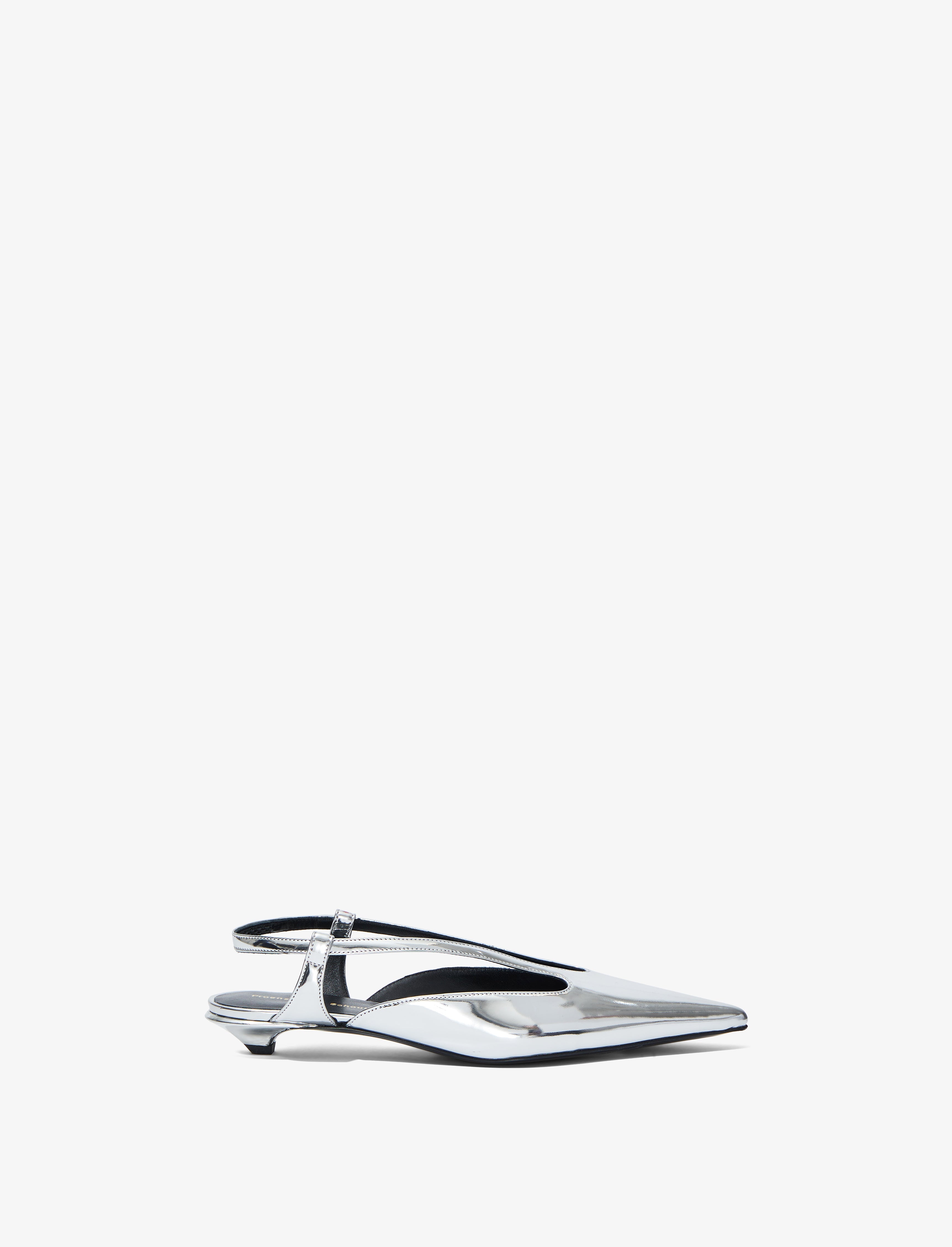 The Point Slingback Pumps in Metallic feature a slip-on silhouette with a slingback. Completed with an elongated closed toe and upper negative space detailing. Details • Silver • Metallic finish • 20mm heel • Slip-on silhouette • Slingback • Elongated closed toe • Upper: • • SKU: PS42010B1902052 Size & Fit • True to Size Care • Upper: 69% polyurethane, 31% polyester; sole: 100% leather • •