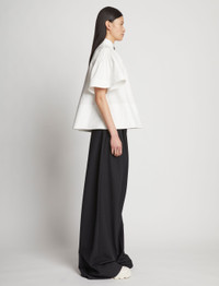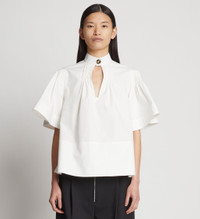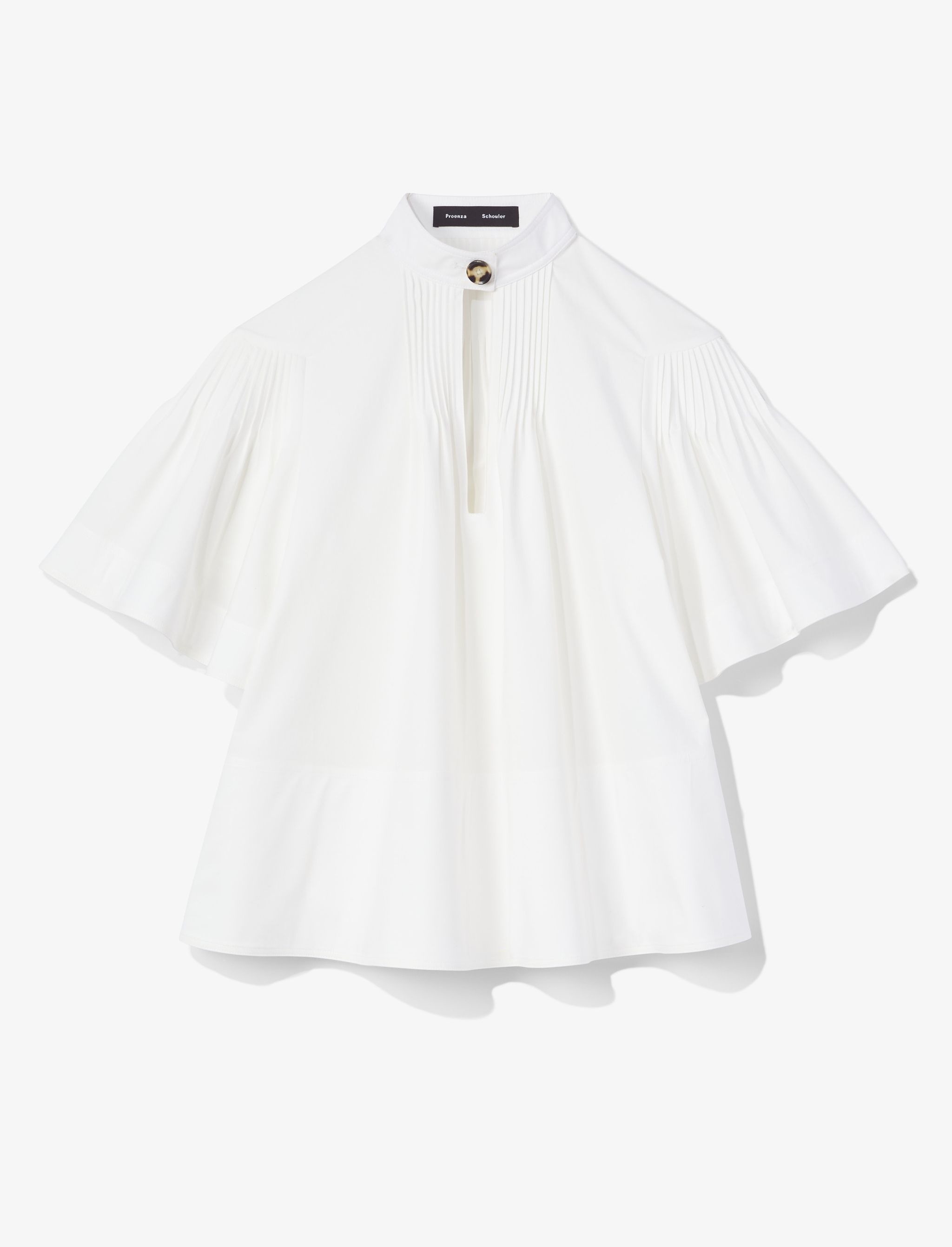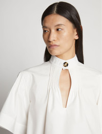 The Poplin Pintuck Top is cut in crisp cotton poplin to a voluminous silhouette and features pintuck detailing at the neck and shoulders. Stand collar with tortoiseshell-effect button and keyhole cut-out. Wide short sleeves. Relaxed fit. 100% cotton. SKU: R2314005SC031100