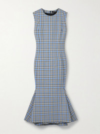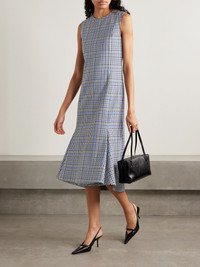 Proenza Schouler's 'Bruna' dress has inverted pleats at the midi hem that help create elegant movement with every step. It's tailored for a slim fit from checked twill and fully lined. Wear yours with a ladylike bag and pumps. Size & Fit - Fits true to size, take your normal size - Intended for a slim fit - Mid-weight, non-stretchy fabric - Model is 175cm/ 5'9" and is wearing a US 2 Details & Care - Blue, black and white twill - Concealed hook and zip fastening at back - 44% polyamide, 30% polyester, 26% virgin wool; lining: 57% viscose, 43% polyester - Fully lined - Dry clean