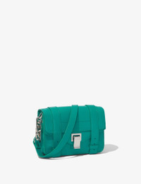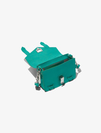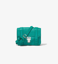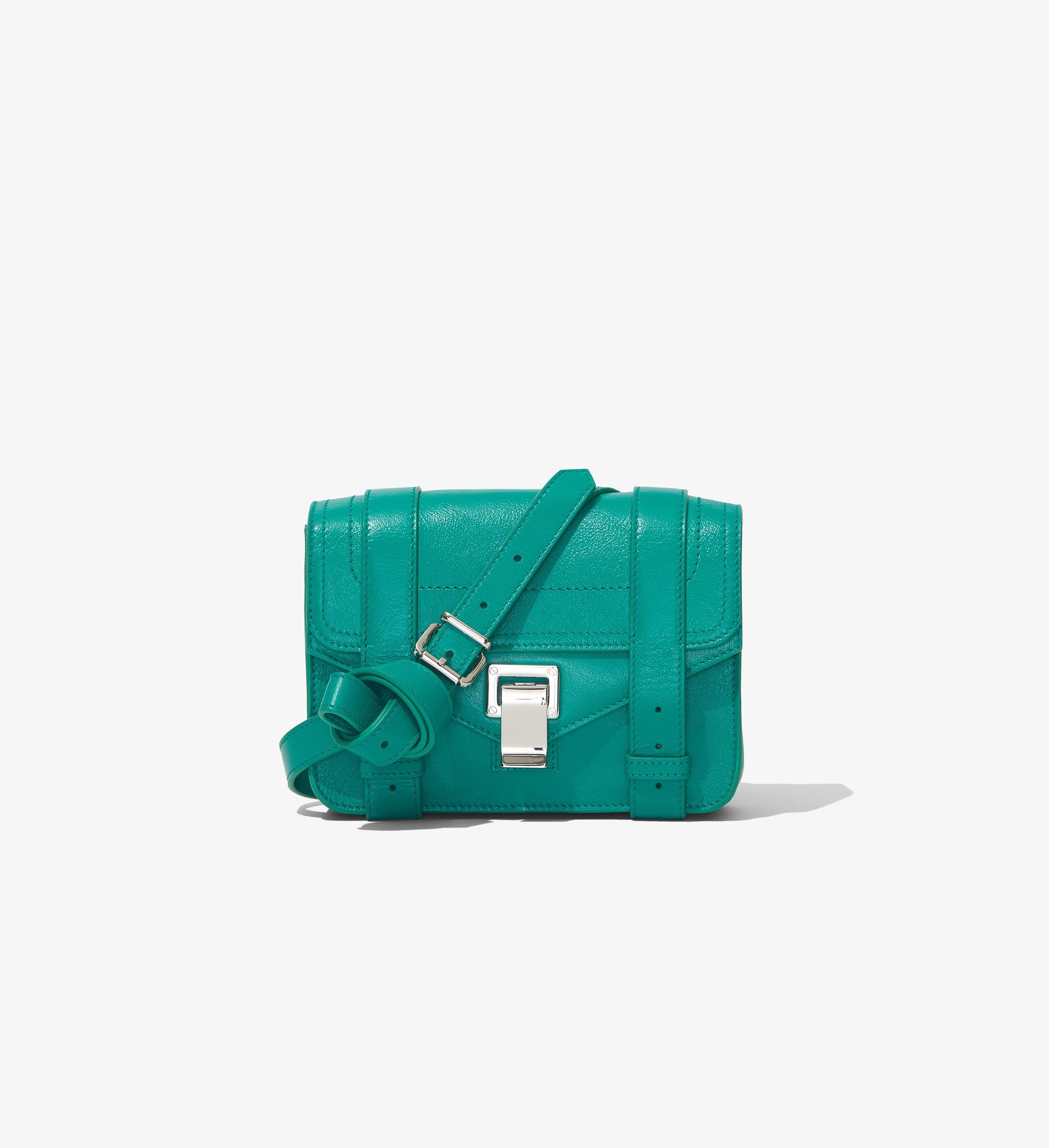 Inspired by traditional workwear satchels, the iconic PS1 family is rooted in function and ease. The PS1 Mini Crossbody Bag is crafted in turquoise lambskin leather and is secured by a signature silver-tone tab closure and belted straps. Features an interior compartment with a durable canvas lining and leather pocket. Includes a removable, adjustable shoulder strap with hand-painted edges and an enameled logo tag. Lambskin leather. Made in Italy. The PS1 family consists of a Micro, Mini Crossbody, Tiny, Medium, and Large. The PS1 Mini is the second smallest body of the family. W: 20cm x H: 15cm x D: 7.5cm Shoulder Strap: 57cm SKU: H00338L001P441