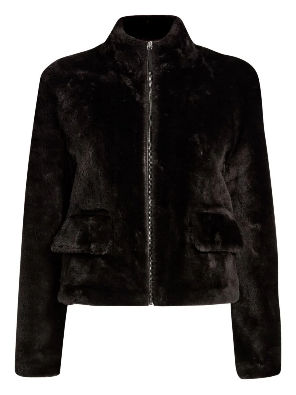 Scarlett shearling jacket Highlights - Black - Shearling design - Zip fastening - Two front flap pockets - High neck - Long sleeves - Straight hem Imported Composition Lamb Shearling 100% Trims: Nappa Leather 100% Washing instructions Read Manufacturer Guidelines
