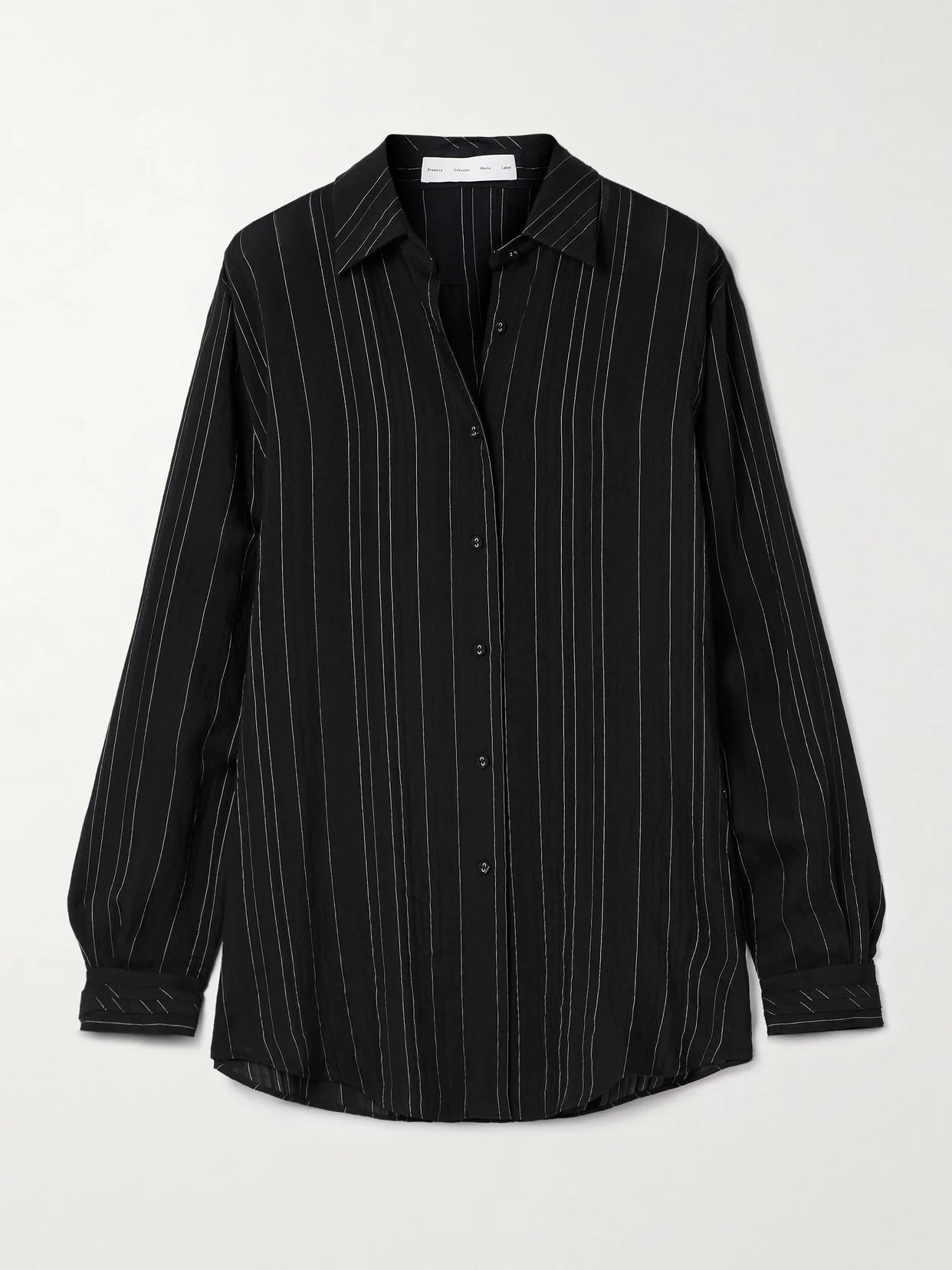 Proenza Schouler White Label's 'Raven' shirt is made from striped voile that drapes loosely over your frame, tucking smoothly into everything from pants to skirts. Tonal button fastenings contribute to a polished feel.