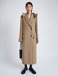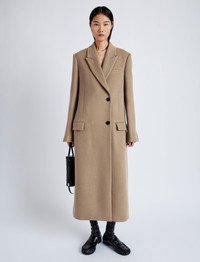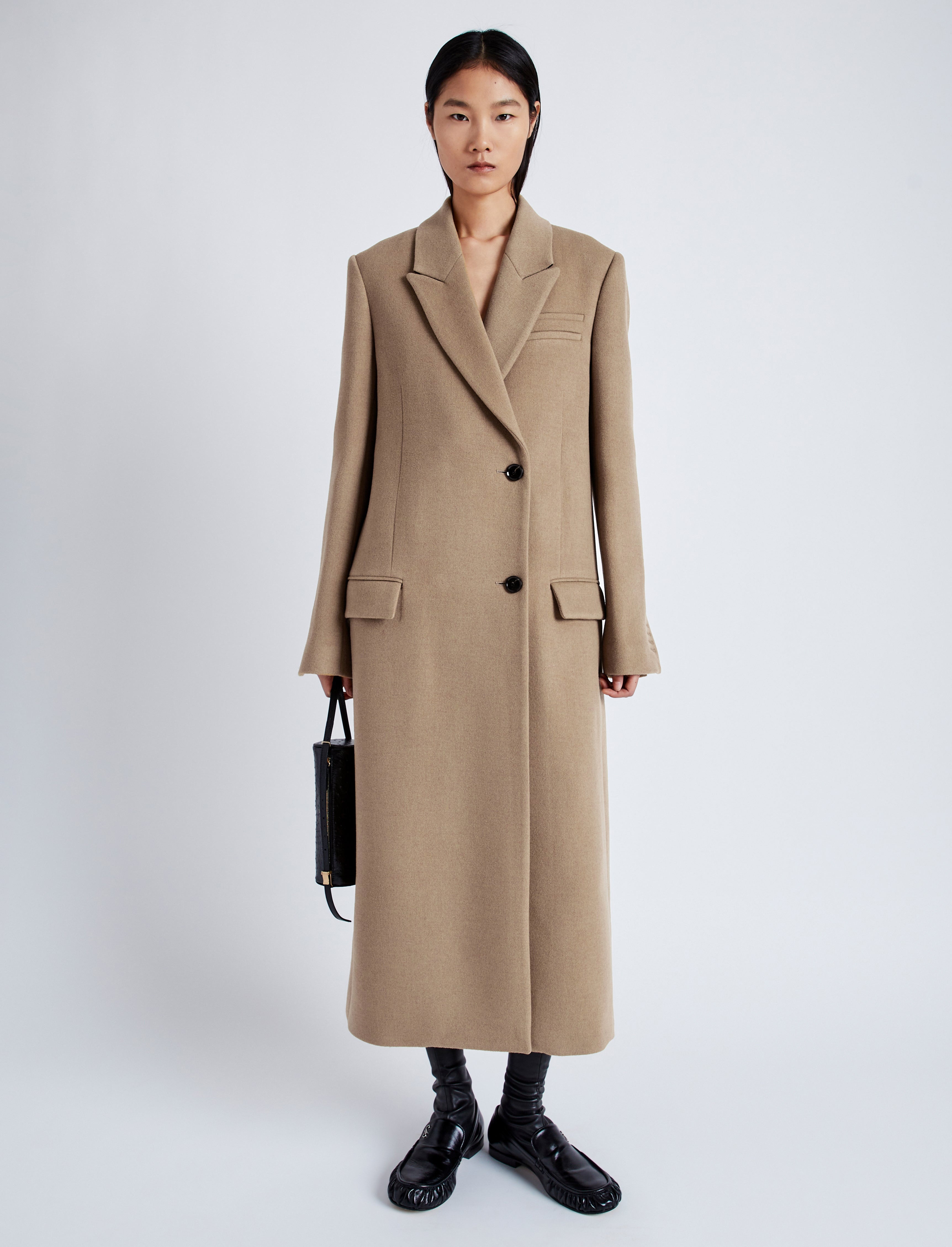 The Reed Coat in Brushed Melange Wool is tailored mid-length silhouette with notch lapels and two front button closures. Completed with a welt chest pocket, two flap pockets, and split sleeve cuffs. Details • Charcoal • Notch lapels • Front button closures • Chest welt pocket • Front flap pockets • Split sleeve cuffs • Back vent • Fully lined • 100% wool • SKU: R2441002AW148245 Size & Fit • Model is 5'11'' with 28.5'' bust / 34.5'' hips. Wearing size 4 Care • 100% wool • Dry clean only