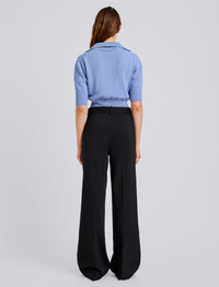 The Reeve Polo in Cotton is knit to a slightly cropped silhouette with short sleeves. Refined with a spread collar and thick knit trims. Details - Pale blue - Spread collar - Short sleeves - Thick knit trims - Straight hem - Slim fit - 92% cotton, 8% polyamide - SKU: R2537156KC132452 Size & Fit - Model is 5'10'' with 31'' bust / 34.5'' hips. Wearing size Small Care - 92% cotton, 8% polyamide - Dry clean only