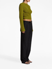 ribbed-knit wrap jumper Highlights - Moss green - Cotton-cashmere blend - Ribbed knit - Wrap design - Crew neck - Extra-long sleeves - Rear tie fastening - Cropped Imported Composition Cotton 95%, Cashmere 5%