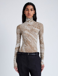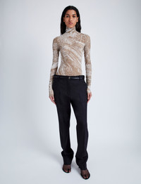 The Rio Top in Printed Tulle Jersey is crafted from sheer tulle to a slim long sleeve silhouette. Details - Wood - Sheer fabrication - Crew neck - Elongated sleeves - 95% polyamide, 5% elastane - SKU: R2444008JYP111243 Size & Fit - Model is 5'9'' with 30'' bust / 34.5'' hips. Wearing size 4 Care - 95% polyamide, 5% elastane - Dry clean only