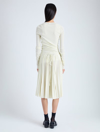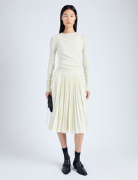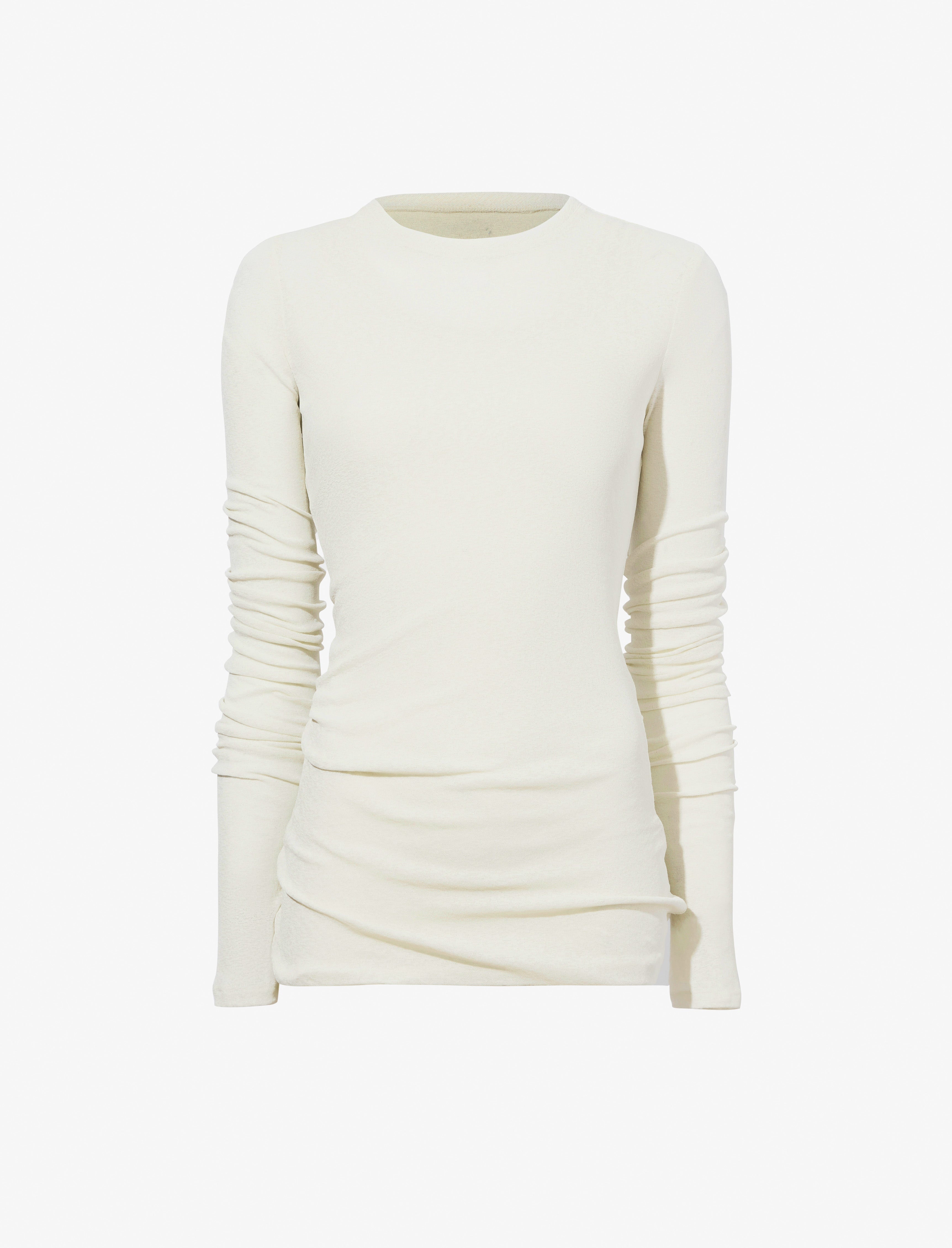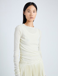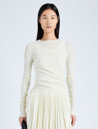 The Roger Layered Top in Gauzy Jersey is cut to a slim double layered silhouette with a sheer long sleeve top paired over a sleeveless tank slip. Details • Bone • Sheer fabrication • Double layered • Crew neck • Long sleeve • Slip tank • Slim fit • 100% polyester • SKU: R2434016JY108123 Size & Fit • Model is 5'11'' with 28.5'' bust / 34.5'' hips. Wearing size 4 Care • 100% polyester • Dry clean only