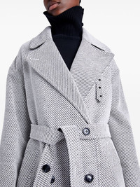 Ronan coat Highlights - White - Light grey - Wool blend - Twill weave - Double-breasted button fastening - Notched lapels - Drop shoulder - Long sleeves - Tied waist - Two side welt pockets - Central rear vent - Straight hem - Mid-length Imported Composition Polyester 67%, Wool 33%