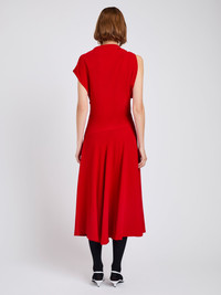 The Rue Dress in Light Matte Double Crepe is crafted in an asymmetric one-shoulder silhouette, featuring a sculptural shoulder detail accented with gold-toned hardware. Finished with an angled waist seam and a fluid midi skirt. Details - Red - Asymmetric neckline - Gold-toned hardware - Asymmetric waist seam - Mid-length hem - A-line silhouette - 72% acetate, 28% polyester - SKU: R2543032BY290600 Size & Fit - Model is 5'10'' with 31'' bust / 34'' hips. Wearing size 4 Care - 72% acetate, 28% polyester - Dry clean only