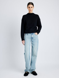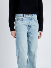 Details - Classic wash - Mid rise - Slim-straight fit - Monogram button closure - Concealed zip fastening - Back faux coin pocket - Non stretch - 98% cotton, 2% elastane - SKU: R2518005DC065468 Care - 98% cotton, 2% elastane - Machine wash warm. Do not bleach. Tumble dry medium. Medium iron if needed. Delicate dry clean.