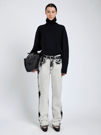 The Ryman Jean in Fade Out Black features a mid-rise and classic straight leg silhouette. Crafted uniquely utilizing a fade out wash process, these jeans come complete with a signature monogram button closure. Please note: Every garment is unique and will age over time due to the fade out and bleaching technique. Details - Fade out black - Mid rise - Slim-straight fit - Monogram button closure - Concealed zip fastening - Back faux coin pocket - Non stretch - 100% organic cotton - SKU: R2618005DC068004 Size & Fit - Model is 5'11'' with 30'' bust / 35.5'' hips. Wearing size 26 Care - 100% organic cotton - Dry clean only