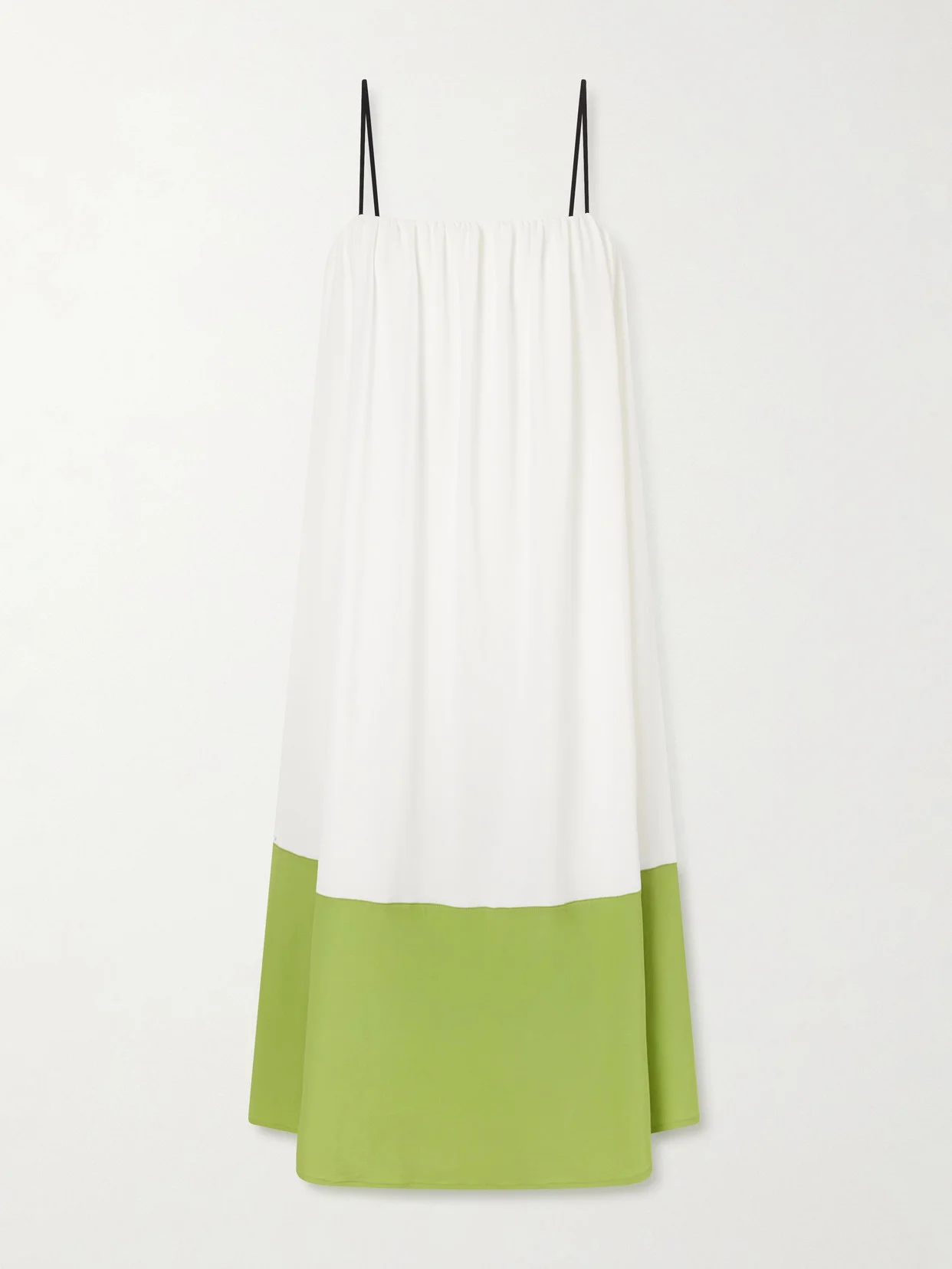 Proenza Schouler White Label's "Saria" midi dress is cut from fluid crepe-jersey that drapes beautifully. Suspended from slim straps, it falls from a softly gathered neckline to a contrasting hem.
