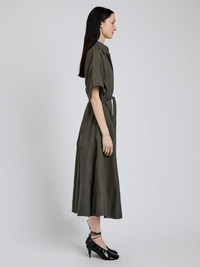 The Scottie Dress in Eco Stretch Linen Viscose features a relaxed silhouette with a point collar, button front, and self-tie waist belt. Finished with short sleeves and a full, flowing skirt. Details - Fatigue - Point collar - Short sleeves - Side slip pockets - Self-tie belt - A-line silhouette - 66% organic linen, 32% viscose, 2% elastane - SKU: R2533037BL001E310 Care - 66% organic linen, 32% viscose, 2% elastane - Dry clean only