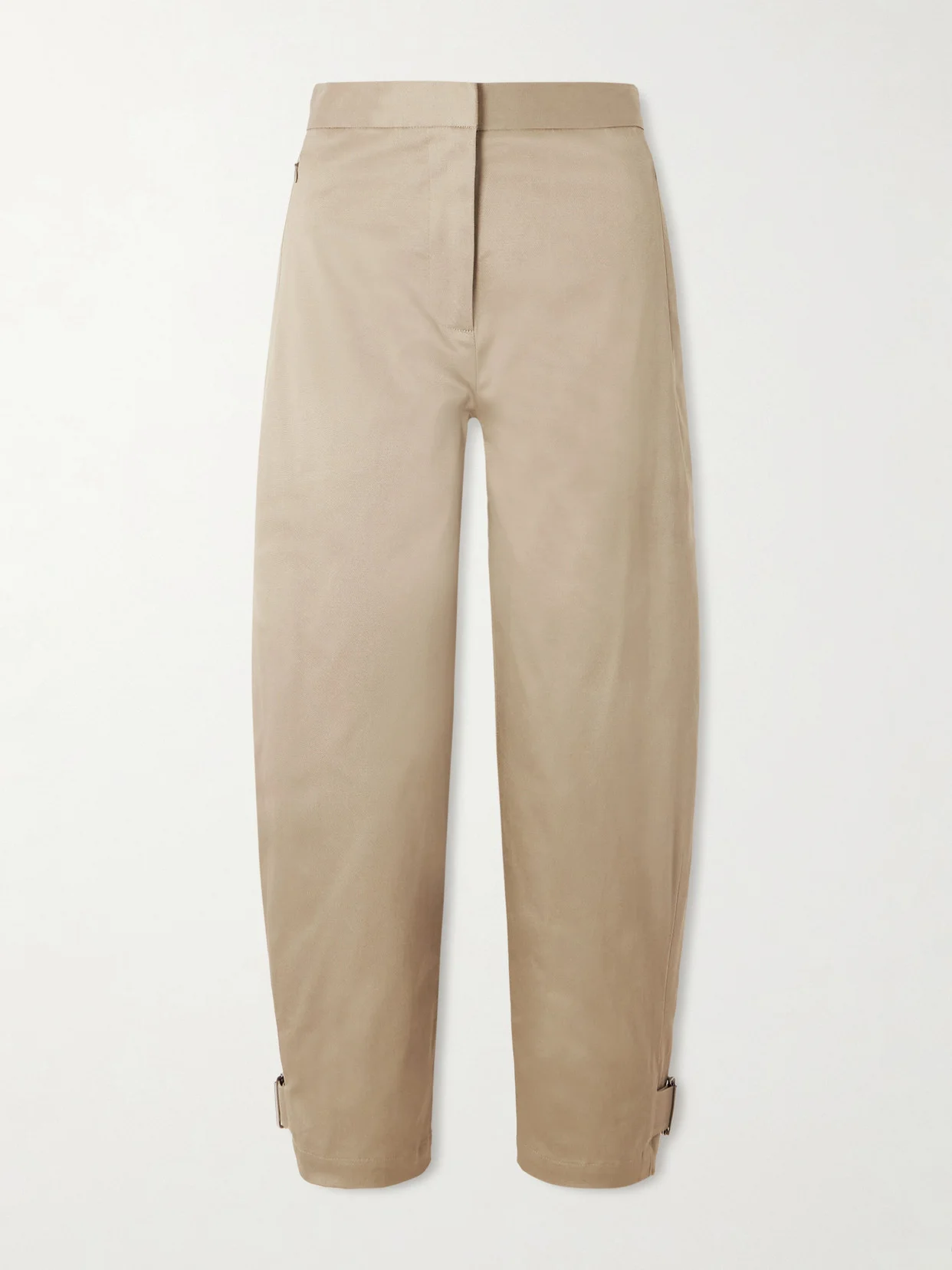 Proenza Schouler White Label's 'Serene' pants blend classic and utility styling. They're tailored from taupe cotton-blend twill with gently tapered legs and buckle-adjustable cuffs.