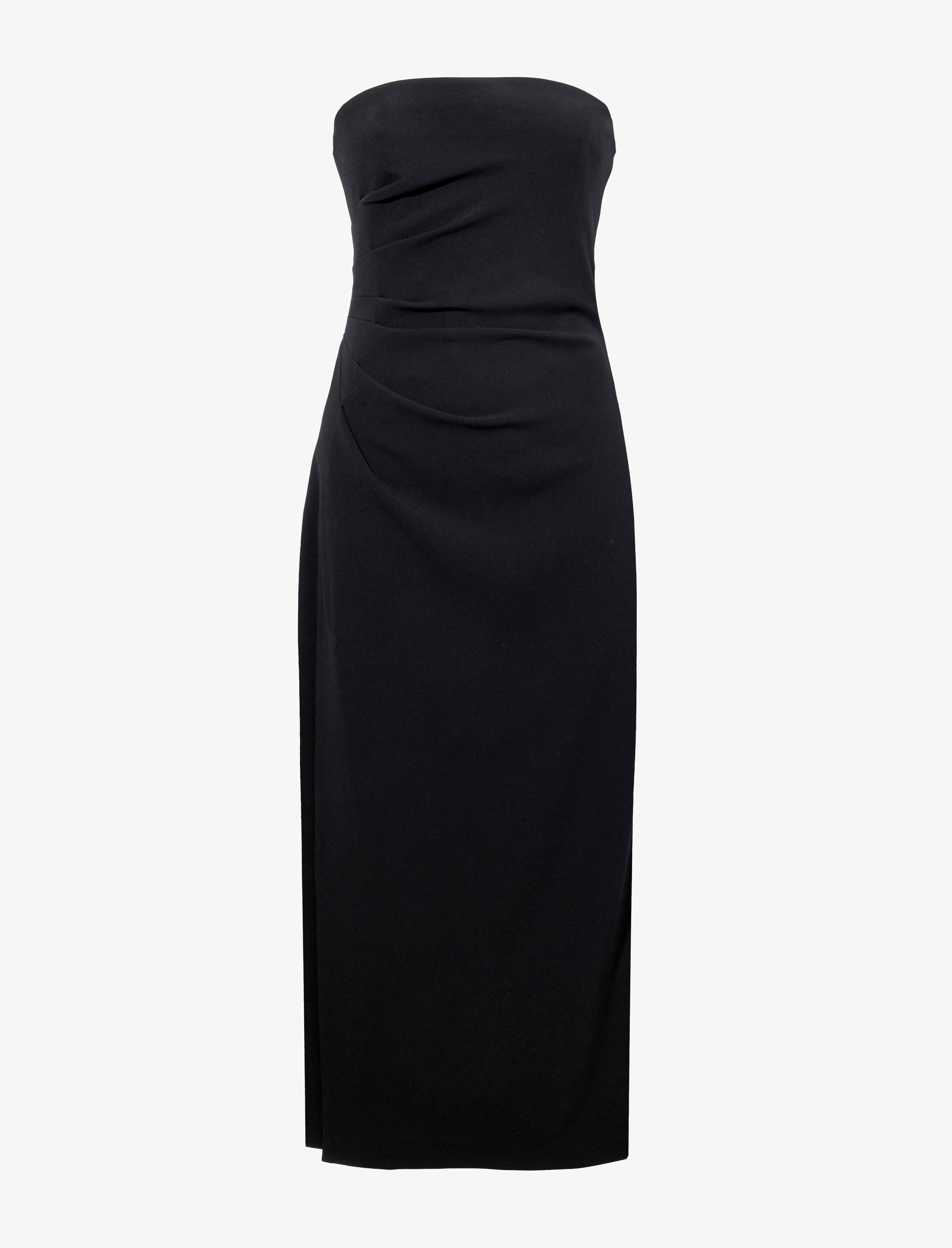 The Shira Strapless Dress in Matte Double Crepe is cut to a strapless silhouette with a gently gathered bodice. Falling to an ankle length, it's finished with a subtle slit at the side. Details - Black - Strapless neckline - Gathered bodice - Side split - Mid-length hem - Slim fit - 70% triacetate, 30% polyester - SKU: R2433008BY116001 Size & Fit - Model is 5'10'' with 33'' bust / 35'' hips. Wearing size 4 Care - 70% triacetate, 30% polyester - Dry clean only