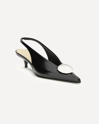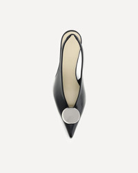 The Dome Slash Slingbacks in Polished Calf by Proenza Schouler feature a flat sole and an exaggerated deep V-cut vamp, creating a sleek, modern silhouette. Finished with a clean front seam stitch for subtle structure, they embody refined minimalism and timeless sophistication. DETAILS - Sku: SH254087B_001 - Season: AW25 - Composition: UPPER 100% Calf Leather Bos Taurus SOLE 100% Calf Leather Bos Taurus - MADE IN ITALY