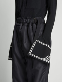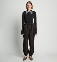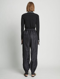 The Silk Nylon Taffeta Pull On Pant is cut in crisp taffeta to a relaxed silhouette and features a high-rise, elasticated waist with a D-ring belt at one side. Side slip and back welt pockets. Visible seams. Elasticated cuffs. 65% polyester, 35% silk. SKU: R2316000BY255001