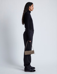 The Silo Bag in Kid Suede is crafted to a small non-rigid barrel shape. Detailed with functional slider hardware, this bag can be worn in two ways. Wear as a traditional shoulder bag or slide the strap through the ring to create an elongated shape. Details - Taupe - Kid Suede - Barrel shape - Structured sides - Soft body - Zipper closure - Two ways to hold - Slider hardware to adjust strap - No interior compartments - Fully lined - 90% goatskin, 10% lamb leather - Made in Italy - SKU: HB244073G102S219 Size & Fit - W: 22cm x H: 8cm x D: 8cm - Shoulder Drop Length: 24cm Care - 90% goatskin, 10% lamb leather