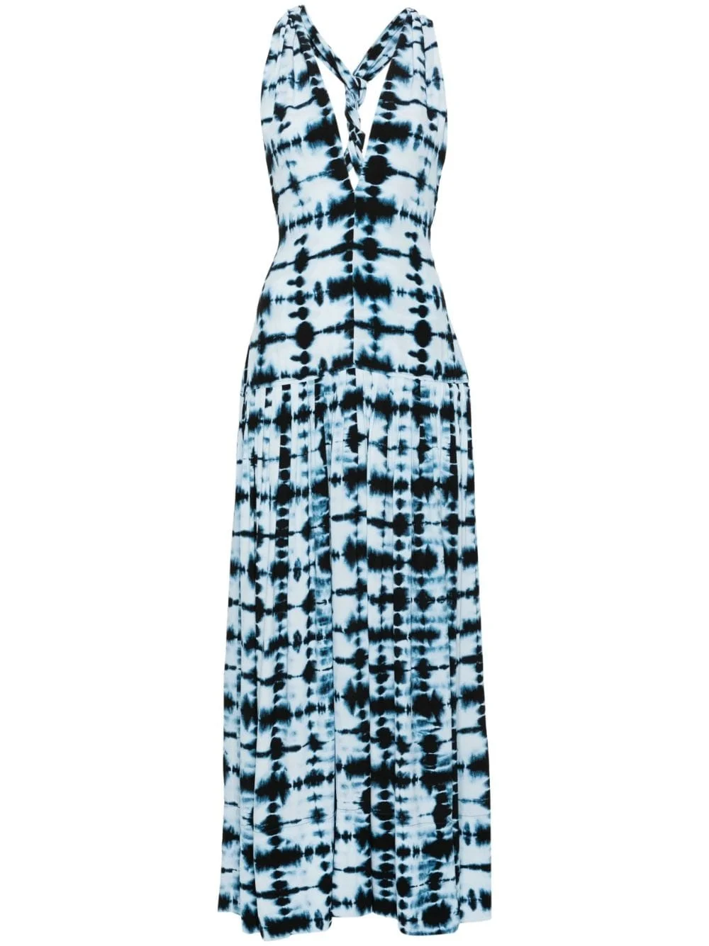 Simone tie-dye midi dress Highlights - Baby blue - Crepe texture - Tie-dye pattern - V-neck - Concealed side zip fastening - Twisted racerback straps - Sleeveless - Pleated skirt - Straight hem - Mid-length Imported Composition Viscose 100% SIZE & FIT Model measurements Height 5 ft 10 in(1.78 m) Bust/Chest 33.07 in(84 cm) Hips 36.61 in(93 cm) Waist 24.8 in(63 cm) FittingInformation Designed for a close fit at the chest and waist with a loose fit at the hip Made from a midweight non-stretch fabric This piece fits true to size – take your usual size