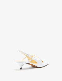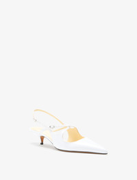 The Slash Crossover Slingback Pumps are crafted in spazzolato leather, featuring a pointed toe and a 40mm kitten heel. Accentuated with crossover straps and adjustable silver-tone buckles. Details - White - 40mm heel - Pointed toe - Crossover straps - Silver-tone buckles - Upper: 100% calfskin; Sole: 100% calfskin - SKU: SH252038C001WC100 Size & Fit - True to size Care - Upper: 100% calfskin; Sole: 100% calfskin - Please refer to care instructions provided with your order.