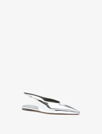 The Slash Flat Slingbacks in Mirrored Metallic are crafted in leather with a metallic fabric upper to achieve a mirrored finish. Features a point toe and elasticated slingback strap. Details - Silver - Mirrored metallic - Flat silhouette - Elasticated slingback strap - Point toe - Upper: 100% polyurethane; Sole: 100% calfskin - SKU: SH252036F001FC041 Size & Fit - True to size Care - Upper: 100% polyurethane; Sole: 100% calfskin - Please refer to care instructions provided with your order.