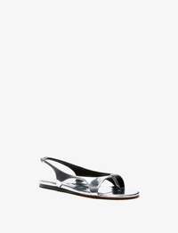 The Slash Flat Thong Sandals in Mirrored Metallic are crafted in leather with a metallic fabric upper to achieve a mirrored finish. Features a flat silhouette defined by ergonomic lines and a side buckle closure. Details - Silver - Mirrored metallic - Flat stacked heel - Thong sandal - Side buckle closure - Embossed footbed - Upper: 100% polyurethane; Sole: 100% calfskin - SKU: SH252035F001FC041 Size & Fit - True to size Care - Upper: 100% polyurethane; Sole: 100% calfskin - Please refer to care instructions provided with your order.