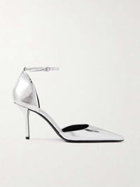 EDITORS'NOTES Proenza Schouler's ‘Slash’ pumps have a D'Orsay design with a pointed toe and slim, adjustable ankle strap for a secure fit. They're made from mirrored faux leather that complements so many different outfits and have an 85mm heel. Style them with a midi dress or cropped pants. SIZE & FIT - Fits true to size, take your normal size - Italian sizing DETAILS & CARE - Heel measures approximately 85mm/ 3.5 inches - Silver faux leather - Buckle-fastening ankle strap