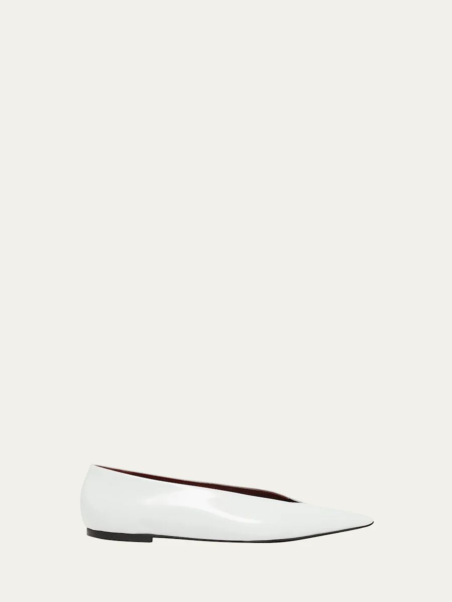 Designed with an exaggerated deep V-cut silhouette, the "Slash" ballerina flats by Proenza Schouler are crafted from polished calf leather Flat heel Pointed toe Slip-on style Leather lining and outsole Made in Italy Online Inquiries: BGS21_X7BW5| Store Inquiries: #5369332