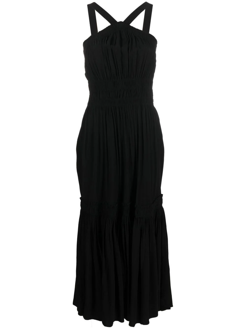sleeveless shirred-effect dress black gathered detailing shirred effect halterneck sleeveless long length Made in Italy Composition Rayon 65%, Viscose 35% Washing instructions Dry Clean Only