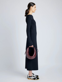 The Slide Bag is crafted in supple leather to a curved silhouette that functions as both a long strap or true shoulder bag. Tighten the straps to create a rounded shape or wear as a more relaxed arch. Finished with collar studs along the strap and a monogram detail at the base of the bag. Details - Dark red - Curved silhouette - Adjustable shoulder strap - Zip top fastening - Monogram detail - Collar studs - Silver hardware - Fully lined - 100% lamb leather - SKU: HB243065L016S608 Size & Fit - W: 40.5cm x H: 22cm x D:11.5cm - Shoulder Drop Length: 40cm - Top Handle Length: 17cm Care - 100% lamb leather - Our bags are hand crafted using genuine leather. Variations in tone, marks or grain are common and should not be considered imperfections. Like all natural materials, leather reacts to the atmosphere. Humidity, rain, and sunlight can damage leather. Should a slight white coating appear on the surface of the leather, it can easily be removed using a dry cloth. Should the leather get wet, please absorb the water immediately with a dry cloth. Overexposure to sunlight can stain or alter the color of the leather.
