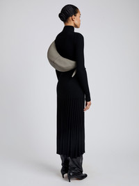 The Slide Bag is crafted in soft pebbled calf to a curved silhouette that functions as both a long strap or true shoulder bag. Tighten the straps to create a rounded shape or wear as a more relaxed arch. Finished with collar studs along the strap and a monogram detail at the base of the bag. Details - Slate - Pebbled leather - Curved silhouette - Adjustable shoulder strap - Zip top fastening - Monogram detail - Collar studs - Silver hardware - Fully lined - 100% calfskin - SKU: HB243065C533S035 Size & Fit - W: 40.5cm x H: 22cm x D:11.5cm - Shoulder Drop Length: 40cm - Top Handle Length: 17cm Care - 100% calfskin - Our bags are hand crafted using genuine leather. Variations in tone, marks or grain are common and should not be considered imperfections. Like all natural materials, leather reacts to the atmosphere. Humidity, rain, and sunlight can damage leather. Should a slight white coating appear on the surface of the leather, it can easily be removed using a dry cloth. Should the leather get wet, please absorb the water immediately with a dry cloth. Overexposure to sunlight can stain or alter the color of the leather.