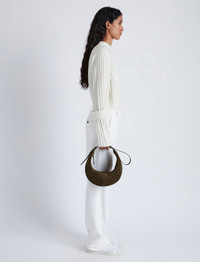 The Slide Bag is crafted in soft suede to a curved silhouette that functions as both a long strap or true shoulder bag. Tighten the straps to create a rounded shape or wear as a more relaxed arch. Finished with collar studs along the strap and a monogram detail at the base of the bag. Details - Olive - Curved silhouette - Adjustable shoulder strap - Zip top fastening - Monogram detail - Collar studs - Silver hardware - Fully lined - 100% calfskin - SKU: HB243065C012S324 Size & Fit - W: 40.5cm x H: 22cm x D:11.5cm - Shoulder Drop Length: 40cm - Top Handle Length: 17cm Care - 100% calfskin - Our bags are handcrafted using genuine leather. Like all natural materials, it reacts to the atmosphere. Humidity, rain and sunlight can cause damage. Should a slight white coating appear on the surface, it can easily be removed using a dry cloth. Should the leather get wet, please absorb the water immediately with a dry cloth. Overexposure to sunlight can stain or alter the color.
