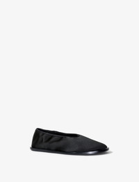Spring 2024 Runway Collection | Look 10 The Soft Square Slippers in Satin are crafted in smooth satin to a fitted slip-on shape. Details • Black • Satin • Slip-on • Tonal insole • Soft square toe • Stitched outsole • Upper: 72% viscose, 28% silk; Sole: 100% leather • Made in Italy • SKU: PS42220B19150999 Size & Fit • True to size Care • Upper: 72% viscose, 28% silk; Sole: 100% leather • Please refer to care instructions provided with your order.