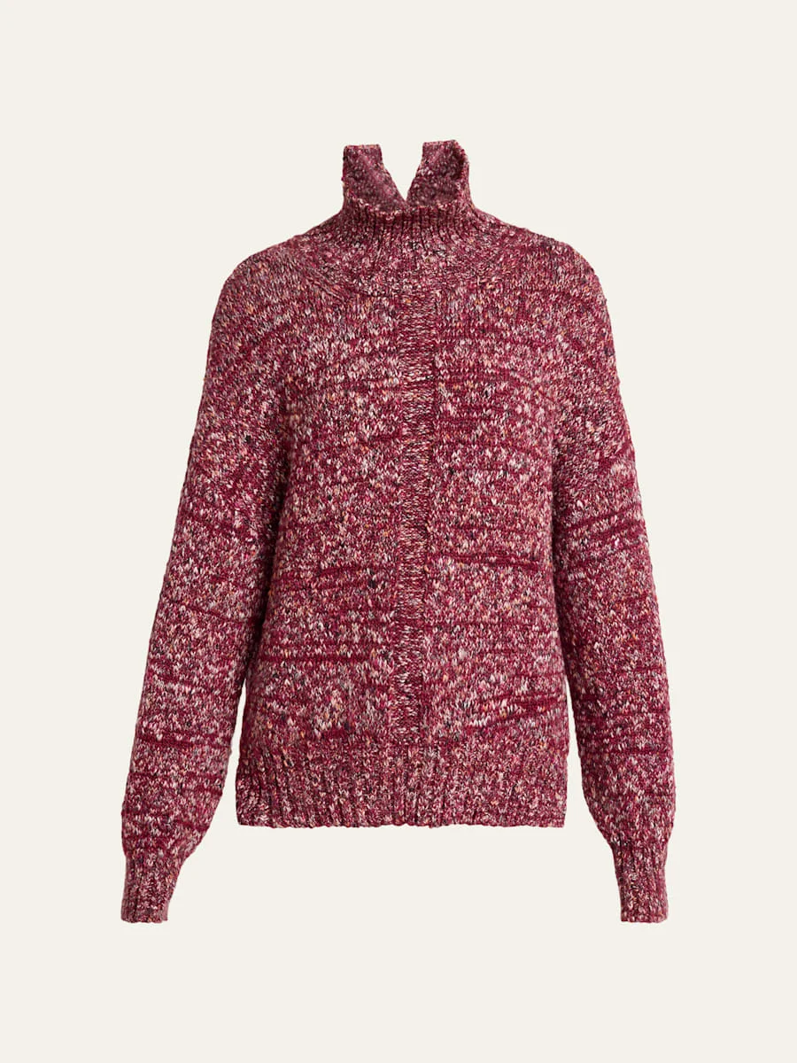 Proenza Schouler "Sol" sweater crafted from a textured melange alpacablend Turtleneck with back split Long sleeves Relaxed fit Hem falls to the hip Pullover style Wool/nylon/polyamide/cotton Dry clean Imported SIZE amp; FITModel measurements: 5'10" tall Model is wearing a US size 4/Small