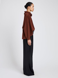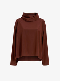 The Solene Top in Silk Viscose features a slinky, long-sleeve silk top with a long funnel neck that can be styled draped or worn as a hood. Details - Mahogany - Funnel neck - Hooded styling - Long sleeves - Fluid draping - Relaxed fit - 50% viscose, 42% silk, 8% spandex - SKU: R2544011BBY297225 Size & Fit - Model is 5'11'' with 32'' bust / 34.5'' hips. Wearing size 4 Care - 50% viscose, 42% silk, 8% spandex - Dry clean only