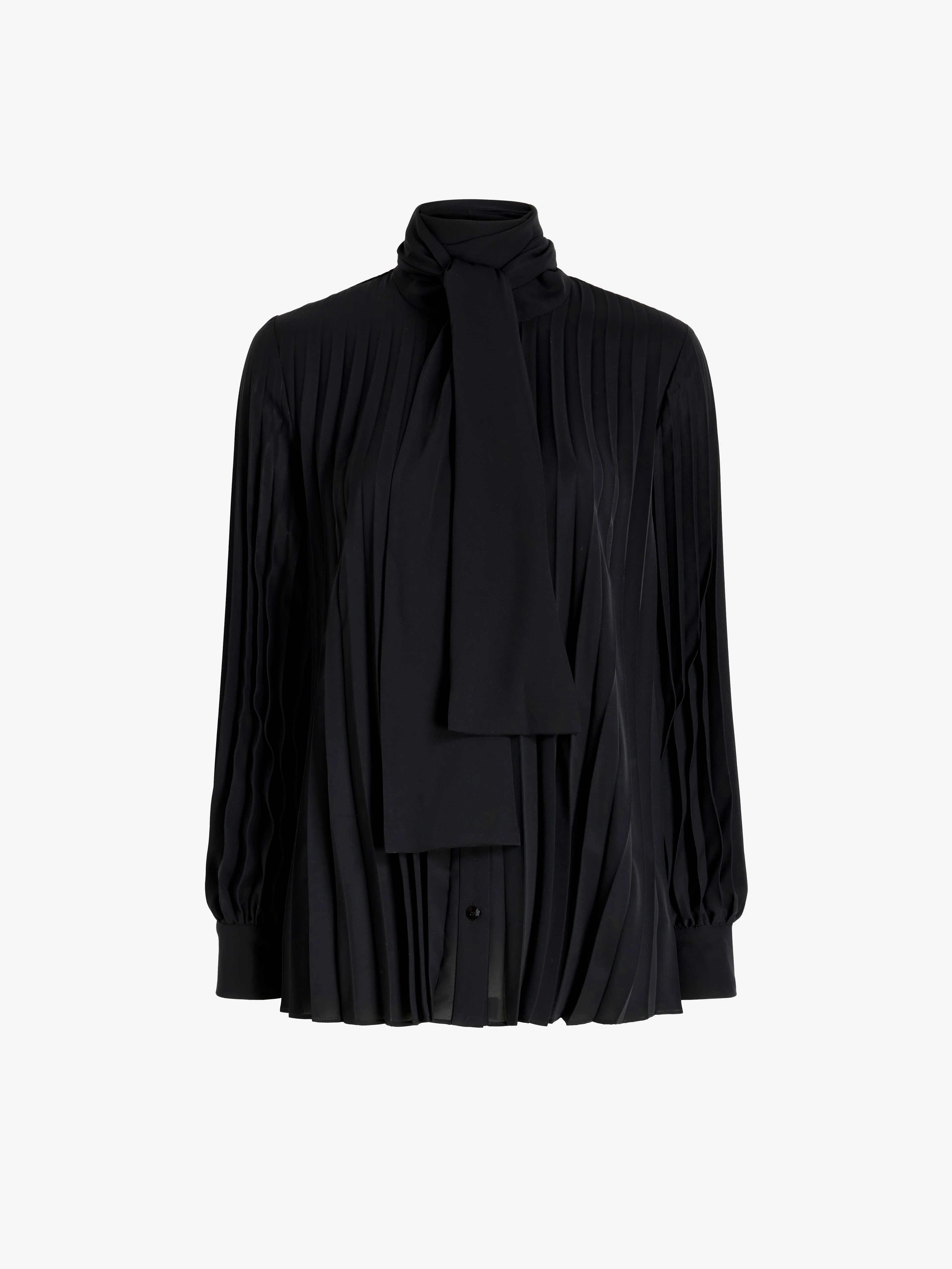 The Soomin Top in Technical Crepe is crafted with delicate accordion pleats. Designed with button-front closures and a necktie for added detail. Details - Black - Mock neckline - Neck tie - Button fastenings - Accordion pleats - Relaxed silhouette - 100% polyester - SKU: R2544003BY355001 Care - 100% polyester - Dry clean only