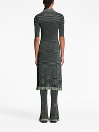 Space-Dye Polo Dress Highlights - Navy blue/lime green/black - Cotton blend - Ribbed knit - Garment dyed - Polo collar - Front button placket - Half-length sleeves - Knee-length Imported Composition Cotton 55%, Viscose 45%