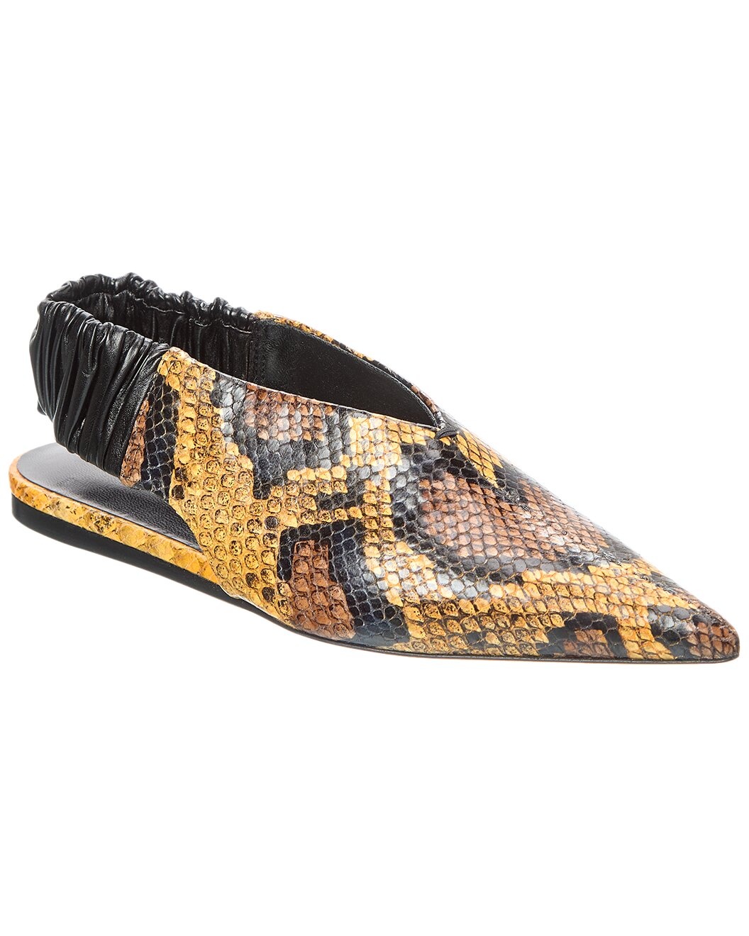 Proenza Schouler Snake-Embossed Leather Slingback Flat