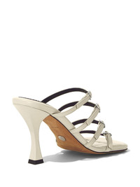 Square strappy 90mm sandals off-white leather decorative buckle detail square toe strappy design branded insole 90mm heel Made in Italy Composition Sole: Calf Leather 100% Outer: Lambskin 100% Lining: Lambskin 100% SIZE & FIT Measurement HEEL 3.54 in(9 cm)