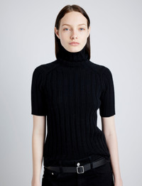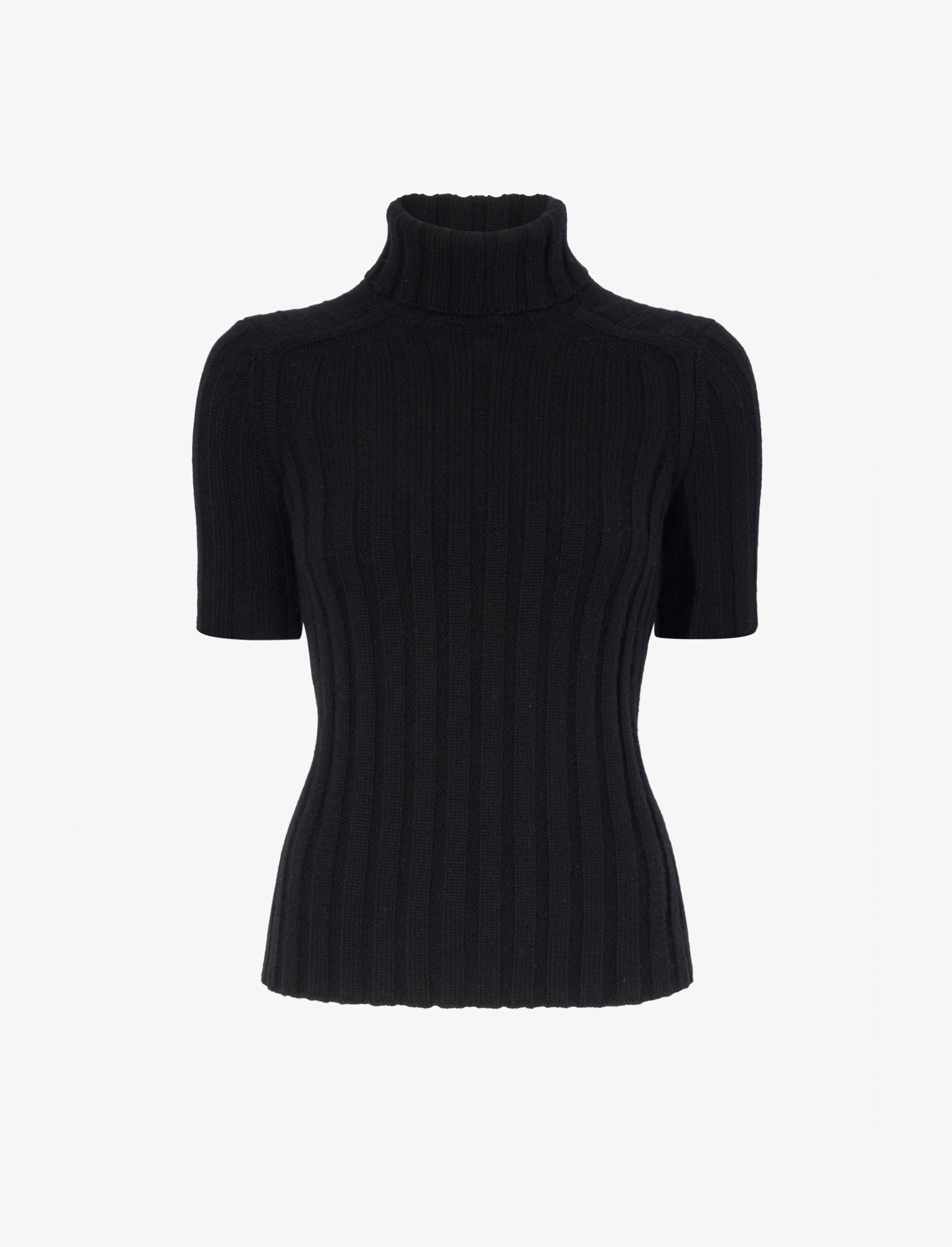 Details - Black - Wide rib knit - Turtleneck - Short sleeves - Small sleeve splits - Straight hem - Slim fit - 70% wool, 30% cashmere - SKU: R2517563KW168001 Size & Fit - Model is 5'11'' with 31'' bust / 36'' hips. Wearing size Small Care - 70% wool, 30% cashmere - Dry clean only