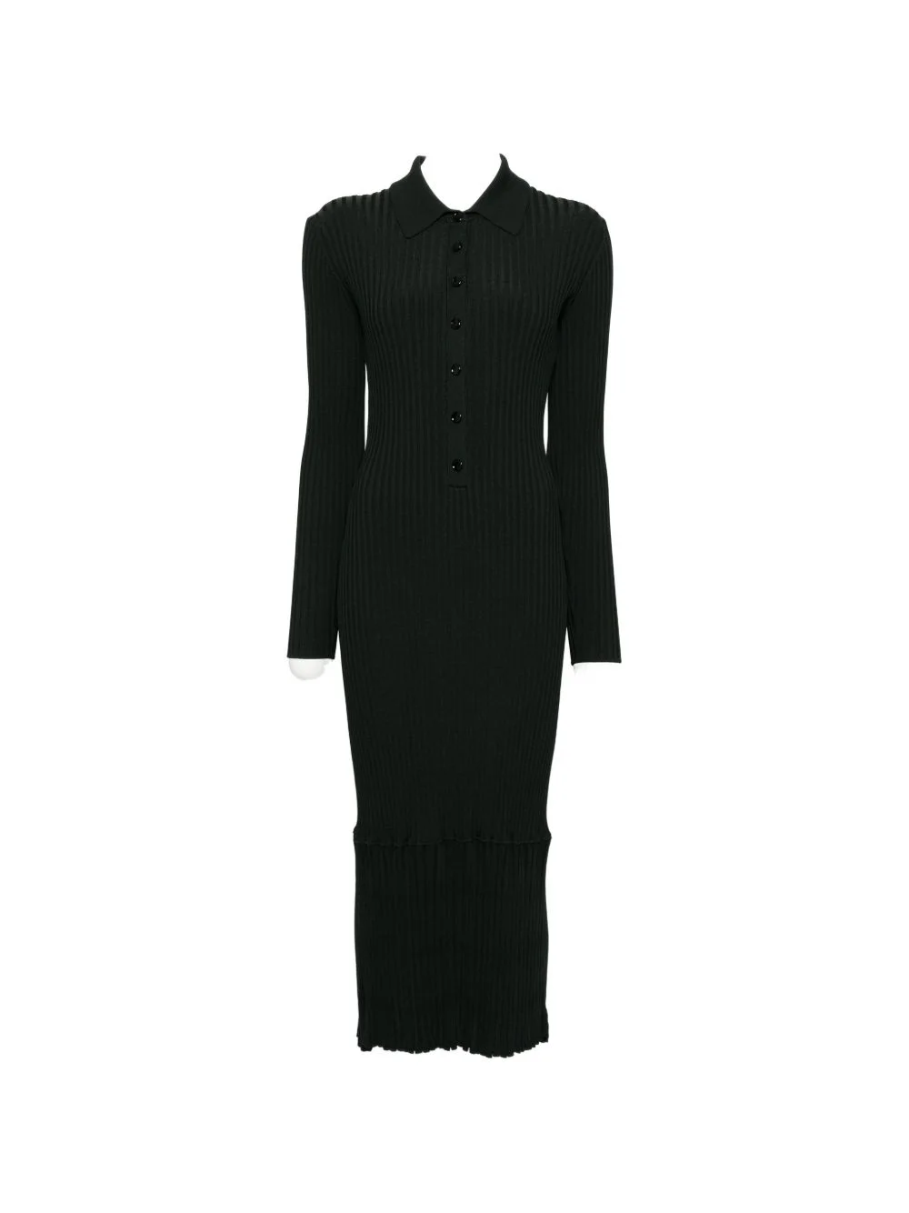 sunburst ribbed midi dress Highlights - Dark green - Ribbed texture - Button fastening - Long sleeves - Point collar Imported Composition Viscose 80%, Polyamide 11%, Polyester 9% Washing instructions Dry Clean Only