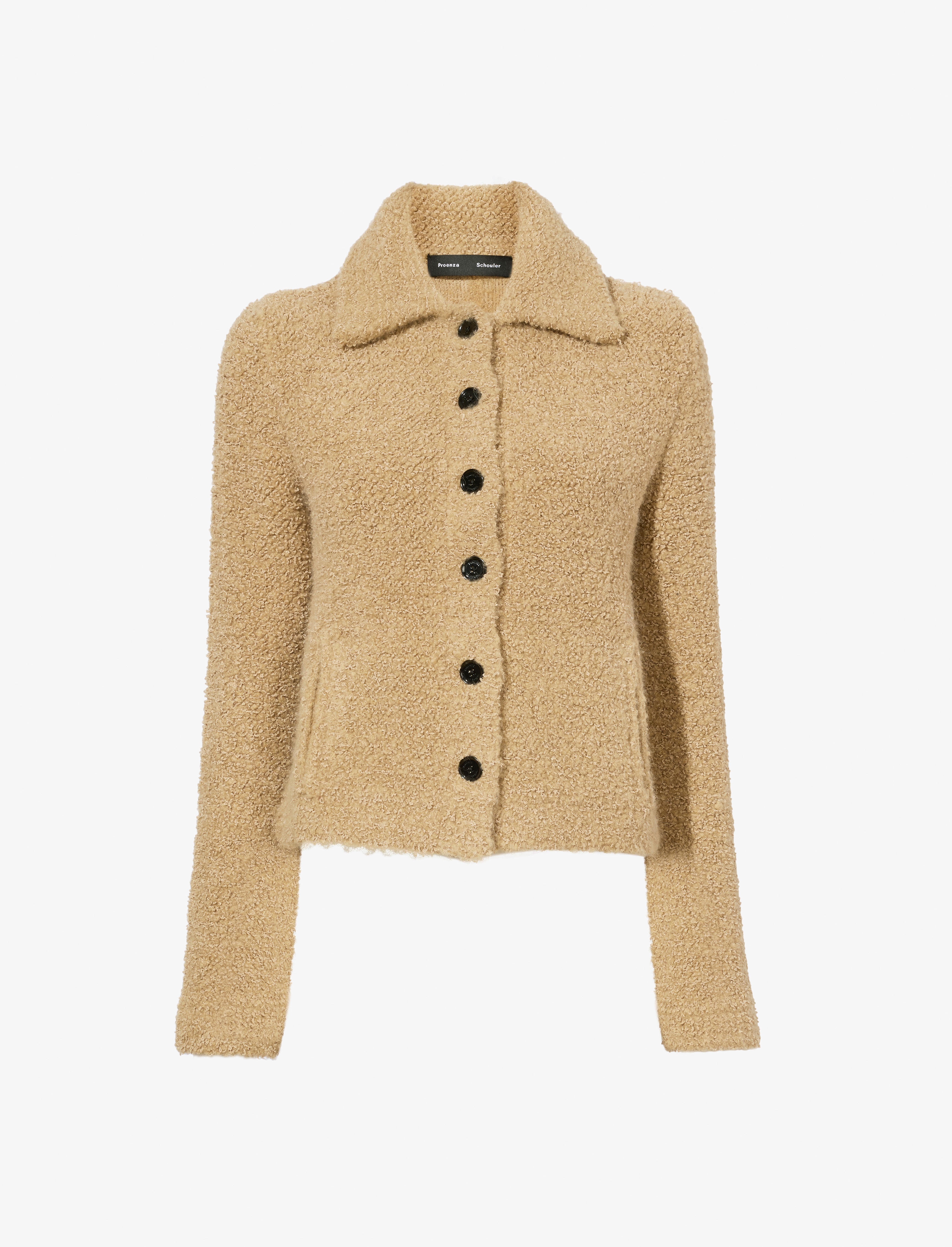 Details - Light camel - Plush handfeel - Point collar - Long extended sleeve - Side slip pockets - Button front fastenings - Straight hem - Slim boxy fit - 37% viscose, 24% nylon, 20% alpaca, 14% wool, 5% polyester - SKU: R2517219KY346285 Size & Fit - Model is 5'11'' with 31'' bust / 36'' hips. Wearing size Small Care - 37% viscose, 24% nylon, 20% alpaca, 14% wool, 5% polyester - Dry clean only