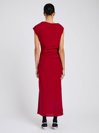 The Tasa Dress in Silk Viscose is crafted in a slim silhouette with an asymmetric neckline and a softly draped body. Finished with an ankle-grazing hem. Details - Scarlet - Draped asymmetric neckline - Cap sleeves - Gathered waist - Straight mid-length hem - Concealed zip fastening - Ankle-grazing hem - Slim fit - 70% triacetate, 30% polyester - SKU: R2543026BY297623 Size & Fit - Model is 5'11'' with 32'' bust / 34.5'' hips. Wearing size 4 Care - 70% triacetate, 30% polyester - Dry clean only
