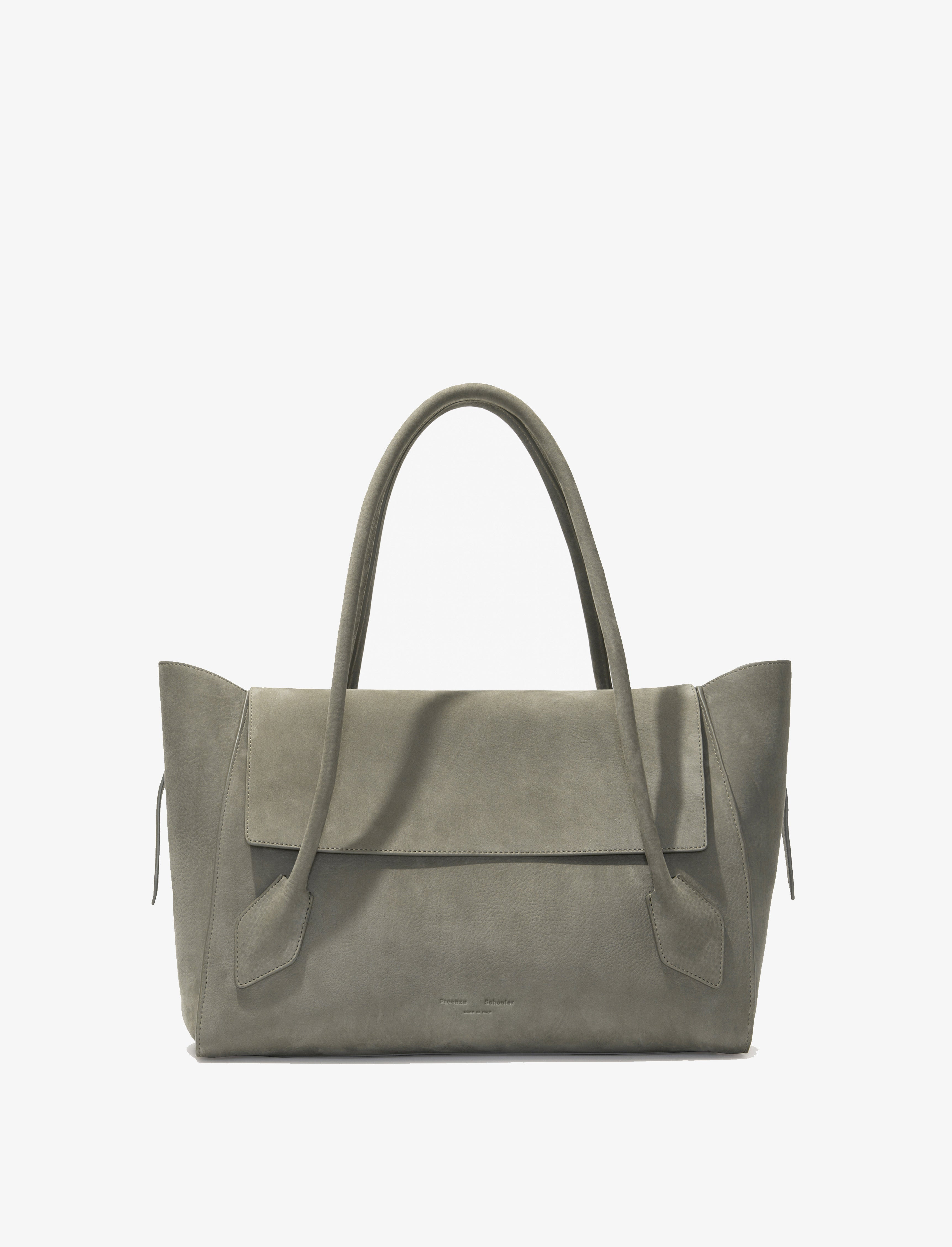 The Tate Bag is crafted in nubuck calf to a large satchel, featuring two handles that extend from the lowest point of the bag, complemented by a keeper strap to hold the handles together. Refined with a front flap closure that can either be tucked into the bag opening or worn outside. The design is accentuated by buckles on both sides, a back slip compartment, and metal feet along the bottom for added protection. Details - Slate - Nubuck Calf - Large satchel - Two handles - Keeper strap - Front flap closure - Side buckle details - Back slip compartment - Protective metal feet - Silver-tone hardware - Suede lined - Embossed logo at center bottom - 100% calfskin - SKU: HB251081C328S035 Size & Fit - W: 38cm x H: 26.5cm x D: 15cm - Shoulder Drop Length: 21cm Care - 100% calfskin - Our bags are hand crafted using genuine leather. Variations in tone, marks or grain are common and should not be considered imperfections. Like all natural materials, leather reacts to the atmosphere. Humidity, rain, and sunlight can damage leather. Should a slight white coating appear on the surface of the leather, it can easily be removed using a dry cloth. Should the leather get wet, please absorb the water immediately with a dry cloth. Overexposure to sunlight can stain or alter the color of the leather.
