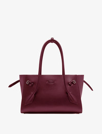 The Tate Bag is crafted in smooth leather to a large satchel, featuring two handles that extend from the lowest point of the bag, complemented by a keeper strap to hold the handles together. Refined with a front flap closure that can either be tucked into the bag opening or worn outside. The design is accentuated by buckles on both sides, a back slip compartment, and metal feet along the bottom for added protection. Details • Dark red • Large satchel • Two handles • Keeper strap • Front flap closure • Side buckle details • Back slip compartment • Protective metal feet • Silver-tone hardware • Suede lined • Embossed logo at center bottom • 100% calfskin • SKU: HB251081C327S608 Size & Fit • W: 38cm x H: 26.5cm x D: 15cm • Shoulder Drop Length: 21cm Care • 100% calfskin • Our bags are hand crafted using genuine leather. Variations in tone, marks or grain are common and should not be considered imperfections. Like all natural materials, leather reacts to the atmosphere. Humidity, rain, and sunlight can damage leather. Should a slight white coating appear on the surface of the leather, it can easily be removed using a dry cloth. Should the leather get wet, please absorb the water immediately with a dry cloth. Overexposure to sunlight can stain or alter the color of the leather.