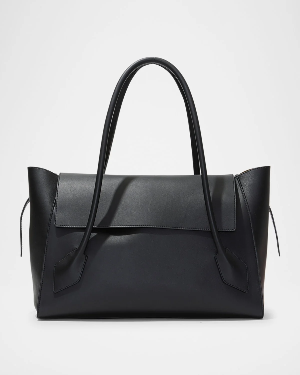 - Proenza Schouler "Tate" shoulder bag in calf leather - Rolled shoulder strap with buckle strap - Flap top with magnetic closure - Exterior, back sip pocket - Interior, one zip pocket and two slip pockets - Feet protect bottom of bag - Approx. 10.4"H x 15"W x 5.9"D - Leather method dry cleaning - Made in Italy